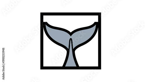 aquatic, sea, tail, blue, grey, white, square, frame, black, outline, simple, clean, minimalist, design, vector, graphic, animal, mammal, ocean, nature, underwater, swim, dive, isolated, shape, symbol, illustration, logotype, icon, fin, curve, wing, geometric, abstract, modern, crest, element, emblem, cool, image, mark, nautical, marin