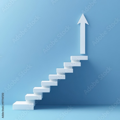 staircase, growth, progress, upward, arrow, minimalist, blue background, business, development, inspiration, success, architecture, design, step, symbolism, direction, geometric, motivation, future, goal, positive, abstract, decision, climb, concept, journey, achievement, pathway, uplifting, elevation, illustration, creative, modern, clear, clean, perspective, innovation, optical, opportunity, ascend, strategy, dream, ambition