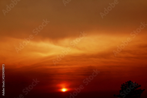 A suburban sunset in summer, bright and warm to enjoy.