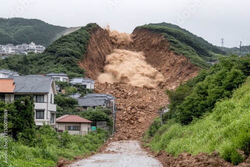 sudden, landslide, destroying, house, infused, hillside, dust, debris, filling, air