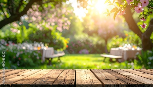 garden, flower, sunlight, wooden, table, bench, greenery, park, nature, scenery, blossom, vibrant, peaceful, calmness, relaxation, picnic, seating, leisure, bright, summer, spring, horticulture, environment, beauty, landscape, plant, blooming, foliage, colourful, soft, warm, picturesque, fresh, inviting, rural, serenity, idylli, scenic, growth, flourishing, tranquil, charme, escape, atmosphere, nurture