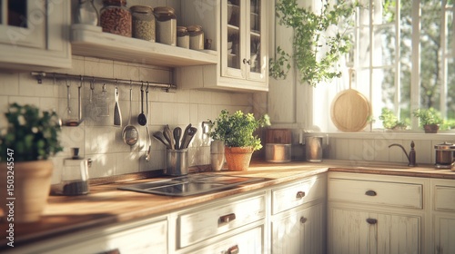 kitchen, wood, fresh, furniture, modern, light, cosy, calm, elegant, corner, sunlight, homelike, home, rustic, detailed, space, warm, cooking, design, window, simple, hearth, plant, natural, wooden, still, warmth, comfortable, interior, country, cabinet, decor, bright, vintage, life, sunny, peaceful