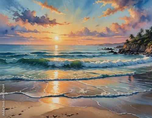 sunset, sea, beach, ocean, sky, sunrise, water, sun, nature, landscape, cloud, sand, cloud, peaceful, gentle, wave, wave, coast, horizon, summer, evening, sunlight, tropical, dusk, orange, dawn, twilight