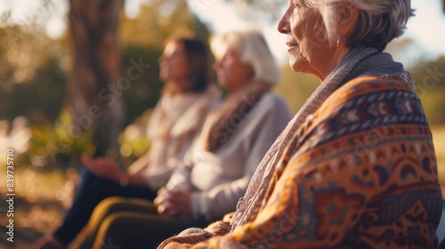 A support group meeting being held in a peaceful outdoor setting promoting a sense of calm and connection