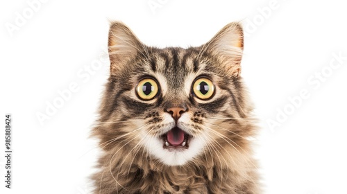 cat, tabby, surprised, eye, mouth, white, background, pet, animal, felino, fur, whisker, cute, adorable, funny, expression, shocked, scared, curious, head, closeup, portrait, domestic, mammal, brown, grey, orange, black, yellow, green, animal portrait, closeup, photo, picture, playful, paw, tongue