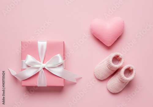 A sweet pink heart gift box with a pink ribbon and bow symbolizes love for a romantic Valentine's Day celebration