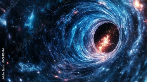black hole, space, galaxy, star, universe, astronomy, science, digital artwork, illustration, swirling, vortex, blue, orange, dark, background, cosmic, nebula, astrophotography, space exploration, science fiction, fantasy, abstract, art, design, wallpaper, desktop, mobile, pattern, texture, gravity, light, energy, time, singularity