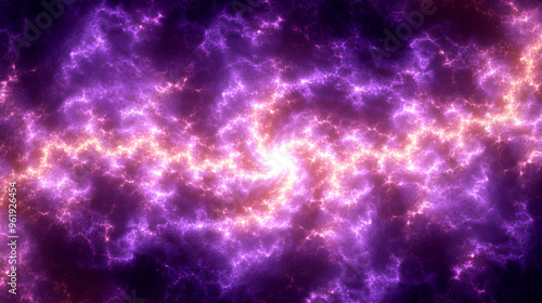 A swirling purple cosmic nebula illuminated by bright star formations in deep space at nighttime