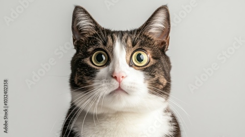 cat, tabby, white, pet, felino, animal, cute, domestic, fur, whisker, eye, surprised, curious, adorable, looking up, head, portrait, isolated, background, white background, studio, photo, mammal, animal portrait, cat eyes, cat, fluffy, soft, playful, friends, companion, home, house, love, trust, affection, gentle, relaxed, peaceful, calm, happy, content, joy, fun