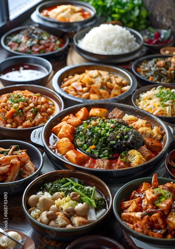 food, korean, delicious, table, bowl, chopstick, rice, tofu, kimchi, soup, stew, vegetable, meat, seafood, spicey, hot, healthy, sharing, family, friends, eatery, eating, culture, tradition, travel, holiday, vacation, asia, seoul, korea
