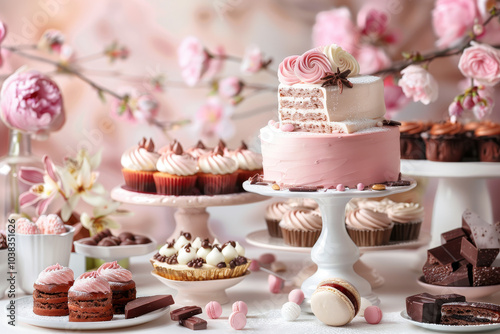 table, full, dessert, including, pink, cake, cupcake, brownie, white, sweet, plate, celebratory, flower, festive, food, celebration, delicious, holiday, party, cream, pastry, bakery, birthday, nobody, decorated, frosting, icing, tasty, baked, background, treat, candy, blue, colourful, homemade, snack, deliciously, event, fresh, confectionery, vanilla, happy, chocolate, yellow, wedding, home, pastel, greeting