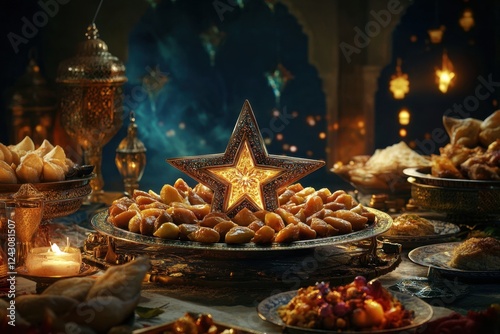 A table is set with a star on top of a tray of food