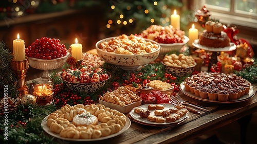dessert, christmas, food, holiday, table, festive, dinner, party, celebration, sweet, pastry, fruit, pie, nut, pecan, candy, snack, treat, delicious, epicure, bakery, traditional, winter, joy, season, warm, family, friends, gathering, light, candle, rustic, wood, decor, centrepiece, home, comfort, elegant, tasty, homemade, happy