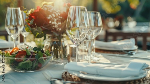 table, plate, glasses, fork, eatery, dinner, luxury, white, setting, dining, wine, napkin, elegance, decoration, banquet, drink, celebration, tablecloth, empty, fine, party, lunch, cutlery, goggles, reception, interior, wine glass, tableware, service, silverware, crystal, place, knife, event, eating, meal, dish, silver, nobody, background, cafes, crockery, catering, view, shiny, fancy, holiday, romantic