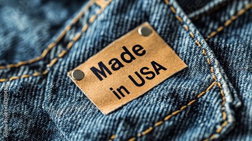 A tag showing "Made in USA" inside a stylish denim jacket.
