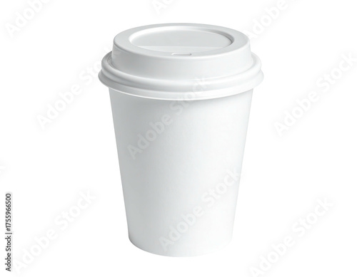 A tall, white disposable paper cup with a lid, likely for hot beverages