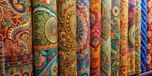 A Tapestry of Colors Golden and Floral Patterns, Fabric, Market, Turkey , Textile , Design , Paisley