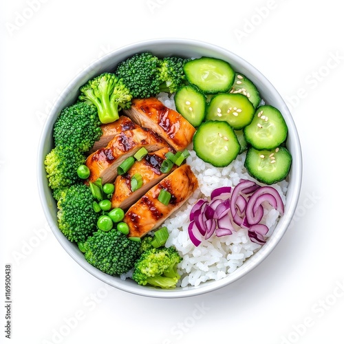 chicken, fried, crispy, broccoli, rice, white, brown, hot, sauce, spicey, vegetable, bowl, isolated, meat, overhead, up high, background, dish, meal, transparent, food, dinner, delicious, cookery