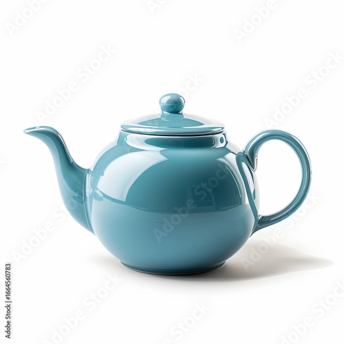 teakettle, teal, ceramic, teapot, kettle, rounded, glossy, smooth, handle, lid, spout, kitchen, home, vintage, simple, porcelain, bright, blue, colours, object, cooking, vessel, drinking, hot, water, drink, brew, cup, tea, british, style, classic, modern, elegant, isolated, white, background, studio, still, life, product, design