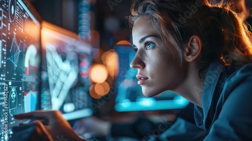 computer, person, technology, office, business, woman, working, night, adult, professional, desk, entrepreneur, female, businesswoman, dark, cyberspace, young, corporate, late, indoor, occupation, specialist, engineer, serious, workplace, programmer, screen, beautiful, typing, monitor, looking, designer, sitting, modern, table, operator, facility, surveillance, international, cyberspace, display, center, one person, interior, creative, programming, employee, job