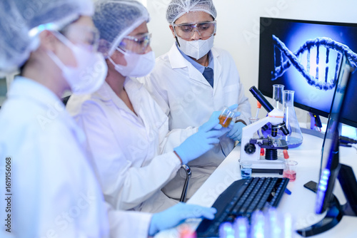 genetic, deoxyribonucleic acid, biotechnology, research, scientist, team, collaboration, laboratory, science, medicals, health care, gene, analysis, technology, teamwork, researcher, development, innovation, discovery, future, modern, biologist, chemist, laboratory, computer, screen, model, helix, genome, engineering, experiment, pipette, flask, sample, liquid, microscope, mask, goggles, glove, pharmaceutical, bioinformatics, therapy, heredity, drug, make well