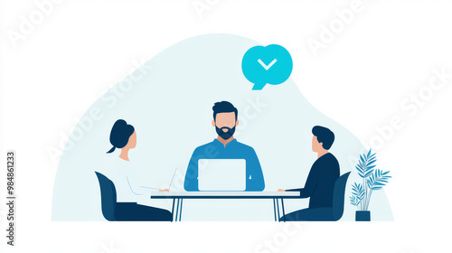 teamwork, team, meeting, collaboration, colleague, office, work, business, project, discussion, presentation, success, achievement, agreements, check, checkmark, blue, approve, approved, illustration, graphic, vector, flat, minimal