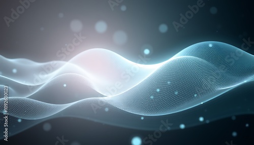 A tech-inspired wallpaper featuring faint waveforms and light reflections, subtly layered in muted silver and turquoise tones to create a relaxed digital ambiance.