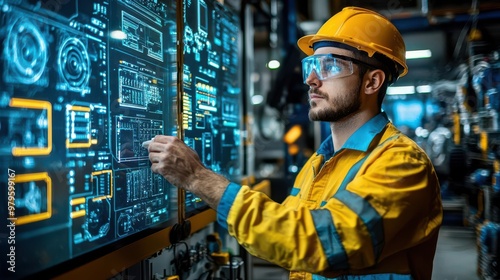 A technician securing industrial systems with automated cybersecurity tools