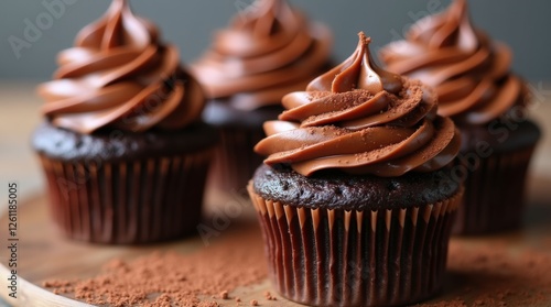 A tempting chocolate cupcake with velvety frosting and a sprinkle of cocoa powder