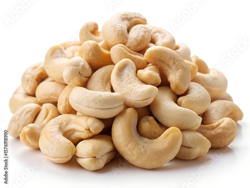 A tempting pile of raw cashew nuts isolated on white background, perfect for healthy snacking and culinary creations