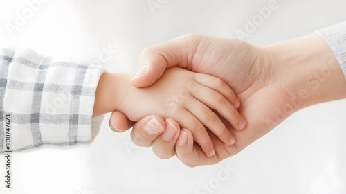 A tender moment of connection as an adult and child shake hands, symbolizing trust and partnership.