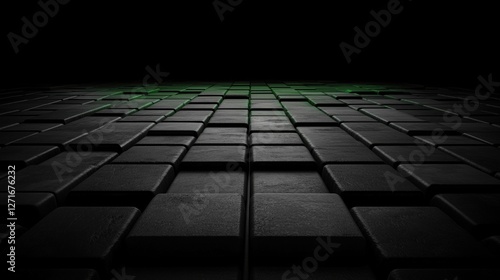 A textured surface of black tiles with a subtle green glow, creating a modern and sleek appearance.