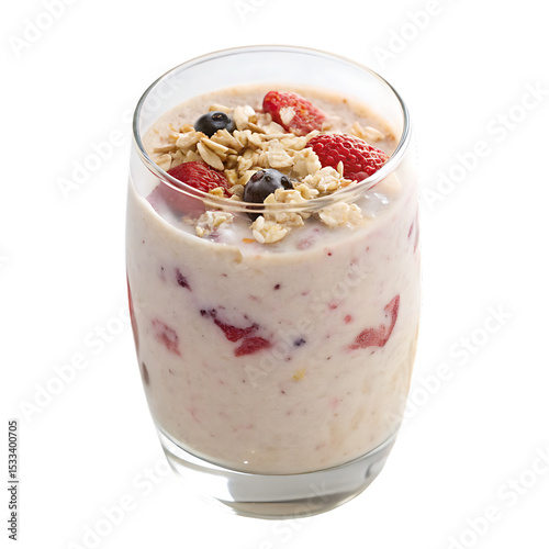 A thick and creamy oats breakfast smoothie isolated on transparent background