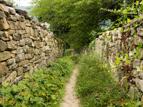 wall, stone, countryside, farm, wicklow, man, made, green, path, garden, nature, sky, plant, house, lane, gate, bush, spring, hiking, geranium, country, tree, field, old, bulgaria, preserved, beauty, distance, colours, covered, bush
