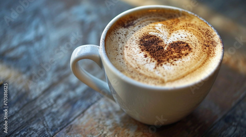 A tiny heart drawn in the foam of a coffee cup, heart, minimalism, Valentine's day, with copy space