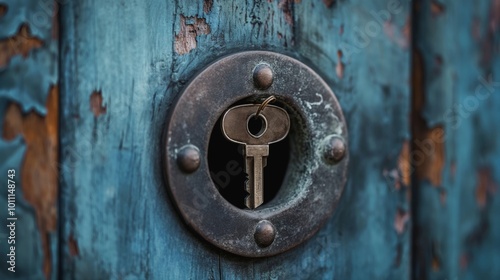a tiny key in the hole of the lock