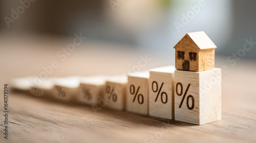 house, percentage, interest, rate, loan, finance, mortgage, building, block, wooden, home, investment, property, real, estate, market, economy, growth, increase, symbol, signs, risk, capital, saving, future, planning, strategy, solution, concept, price, value, tax, revenue, crisis, management, payment, cash, commerce, banking, debt