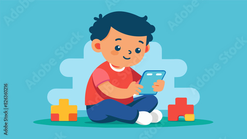 A toddler eagerly showing off their skills on a puzzle game app quickly solving challenges with ease.. Vector illustration