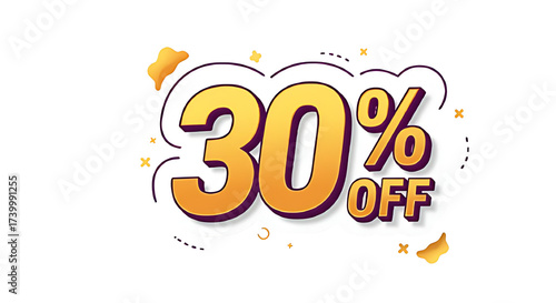 sale, discount, promotion, offer, percent, off, banner, vector, template, gold, advertising, marketing, special, price, label, tags, symbol, signs, illustration, graphic, design, background, business, concept, element, modern, flat, retail, shopping, commerce, badge, sticker, promo, yellow, purple, decorative, art, clip art, artwork, drawing, cartoon, isolated, white, 30, savings, seasonal, deal, event