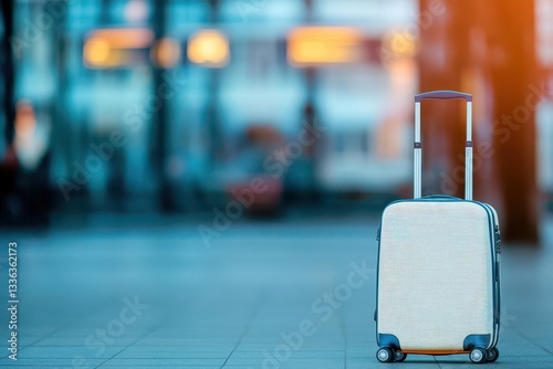 A traveler luggage in focus with the blurred background at an airport or a train terminal a low angle view of a travel luggage in focus and blurred background at the terminal lifes