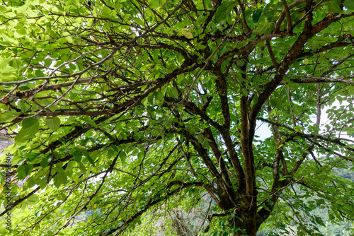 A tree with green leaves and a brown trunk