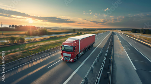 logistic, truck, cargo, transportation, highway, road, freight, trailer, delivery, trucking, vehicle, car, transport, lorry, traffic, sunset, expressway, landscape, automobile, industry, shipping, sun, sky, cloud, drive, perspective, heavy, nature, fast, haulage, speed, container, summer, transit, motion, business, view, way, sunrise, conveyance, dawn, vehicular, transporter, artificial intelligence