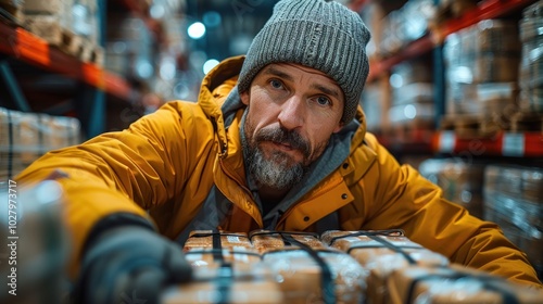 A truck driver securing cargo in the back of a trailer, making sure everything is properly loaded and tied down