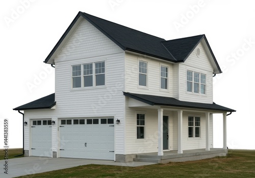 house, siding, roof, garage, lawn, window, white, black, grass, exterior, home, architecture, property, building, estate, residential, design, facades, modern, structure, driveway, column, porch, entry, real, country, style, construction, farmhouse, suburban