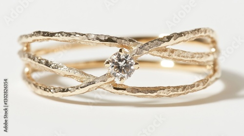 A unique double-band gold ring with a delicate diamond centerpiece.