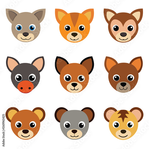 A vector set of funny cartoon cat faces, part of a larger animal icon collection