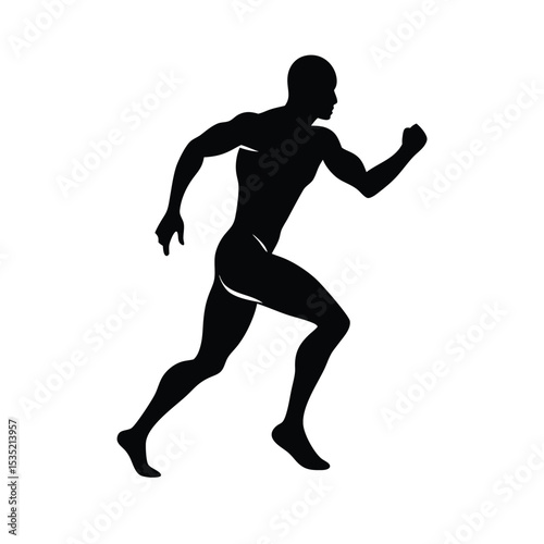 A vector silhouette of an athlete running at full speed, captured in a dynamic and energetic pose