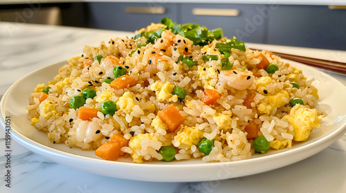 A very delicious and beautiful dish, traditional fried rice, with a mix of fruits and vegetables, prepared in a very simple and tasty way.