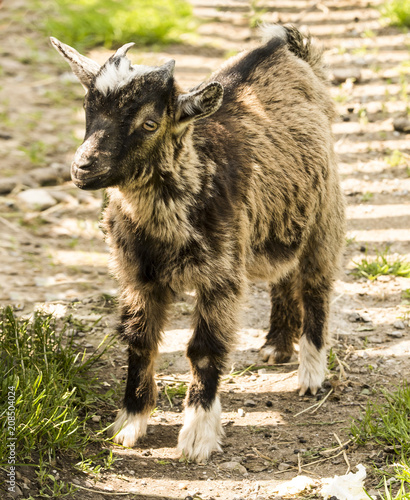 A very young goat looks into the camera. Baden Baden, Baden Wuerttemberg, Germany