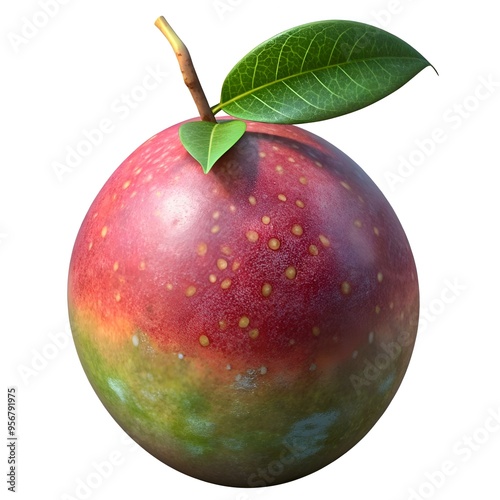 A vibrant 3D illustration of an Amla fruit. showcasing its distinctive red. green. and blue hues.